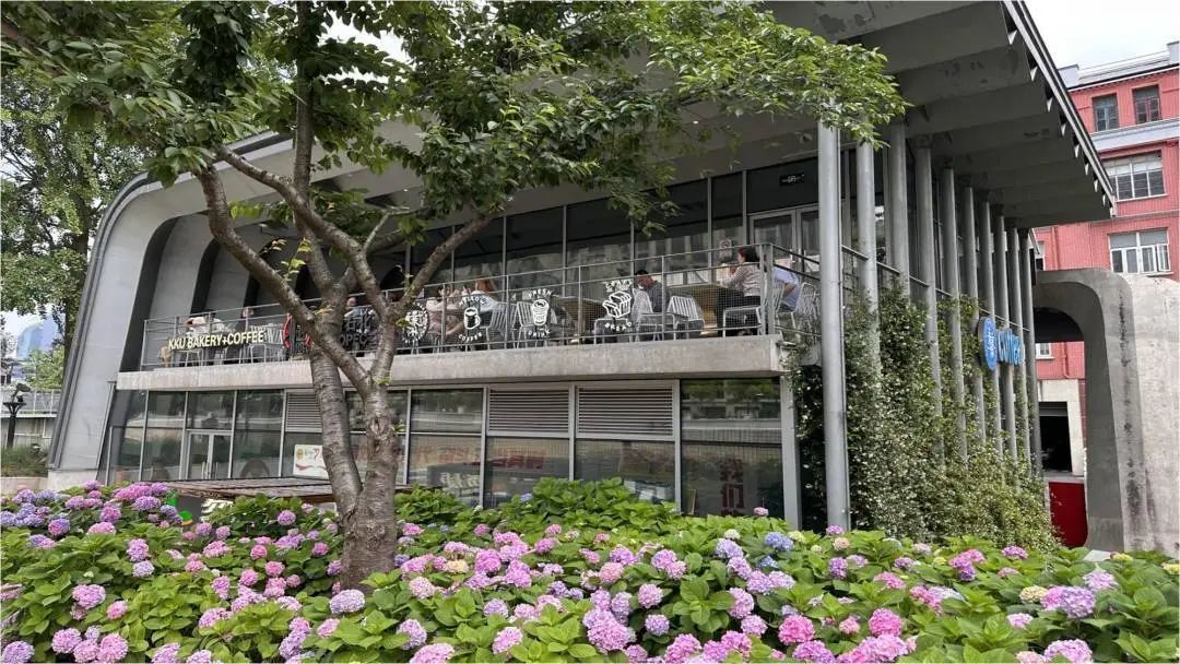 不远处就是樱花谷驿站,不难看出它是一个综合服务体,不仅是党群服务站、志愿者服务站、游客服务站和户外工作者服务站,还设有接待问询区、共享会客厅、共享图书等。驿站在改建时保留原有建筑柱梁,通过设置平台、重塑地形等,营建了上下错落的建筑空间。同时,在原有早樱的基础上新种了晚樱“松月”,延长了樱花观赏期,形成了春日里的粉色浪漫。