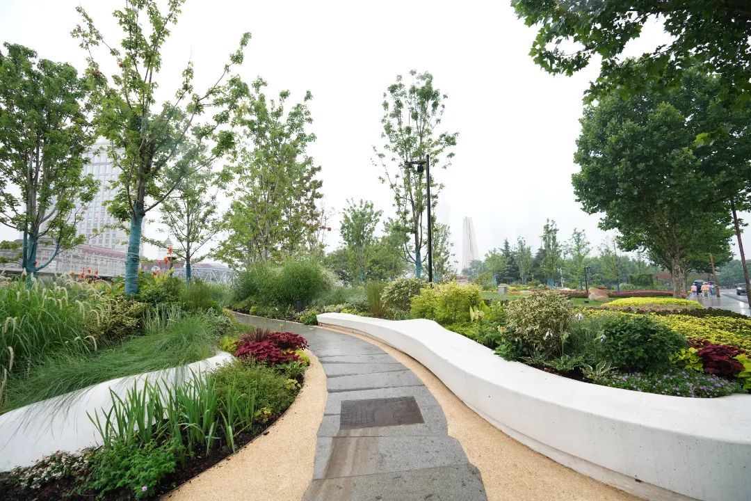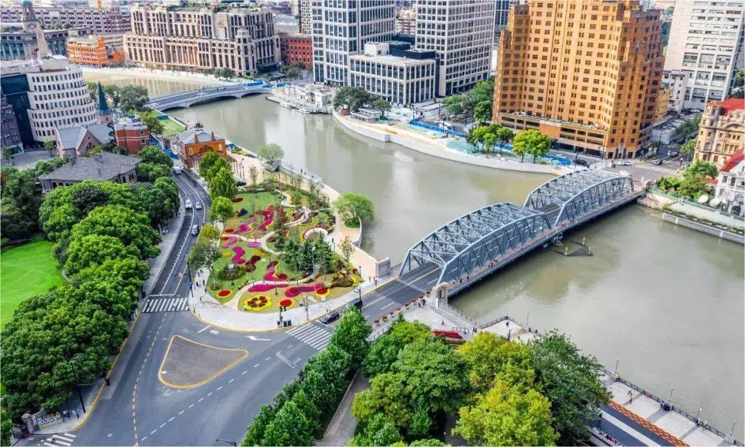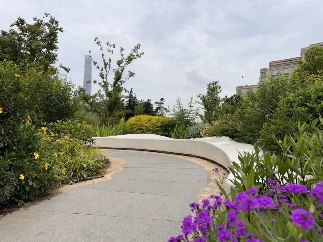 位于苏州河与黄浦江交汇处的最美花园,是观赏黄浦江美景和陆家嘴地标建筑群的绝好角度。花园以花为媒,以林为调,将划船俱乐部与外白渡桥连接,将船文化历史与生活艺术相结合。沿着园中蜿蜒的步道漫步,粉黛乱子草和各色花卉缤纷镶嵌,与海鸥白色调的坐凳融为一体,行走其中,心旷神怡。