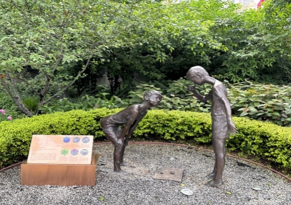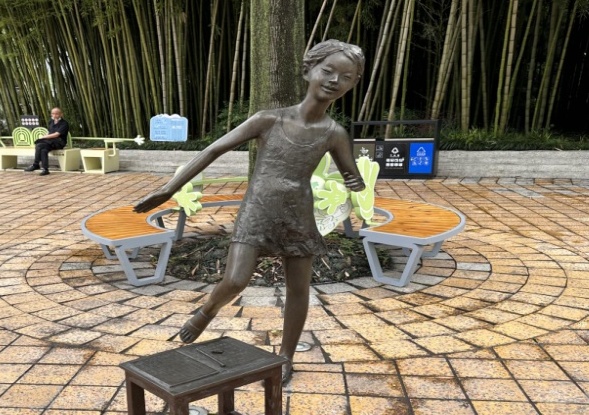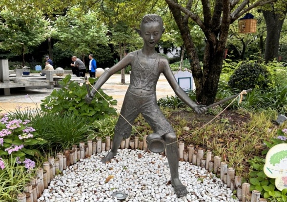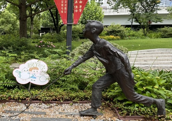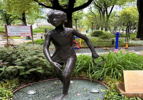 铺开苏州河的烂漫画卷,映入眼帘的就是九子公园。九子公园是一个具有文化特色的公园。“九子”指的是上海本地的九种传统游戏,包括扯铃子、跳筋子、滚轮子、打弹子、掼结子、造房子、套圈子、抽坨子、顶核子。这些游戏代表着上海老一辈人的童年,是上海独特的文化符号。2020年,九子公园完成大规模改造,将公园围墙打开,与滨河空间融为一体,成为市民休闲活动的好去处。
