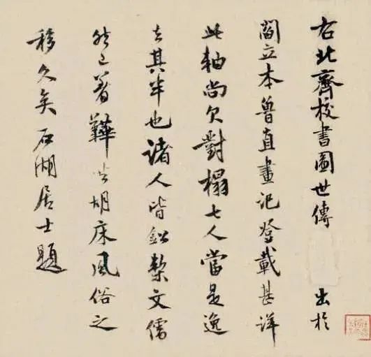 此画后有宋人范成大(号石湖居士)的题跋,范成大是把这件作品当作阎立本的传世作品的,他的鉴定根据是黄庭坚的《山谷题跋》。
