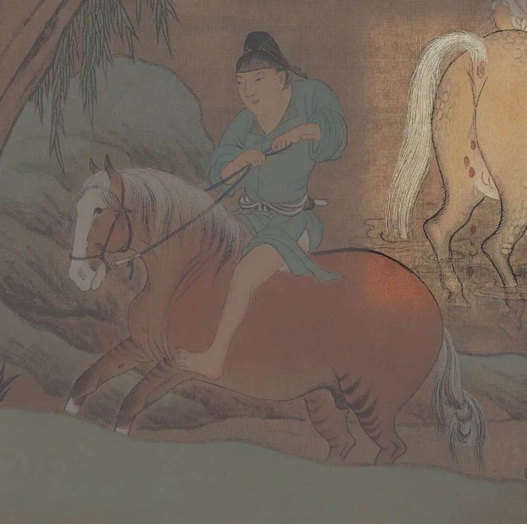 赵孟頫《浴马图》中马拉粪的表现