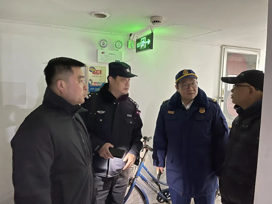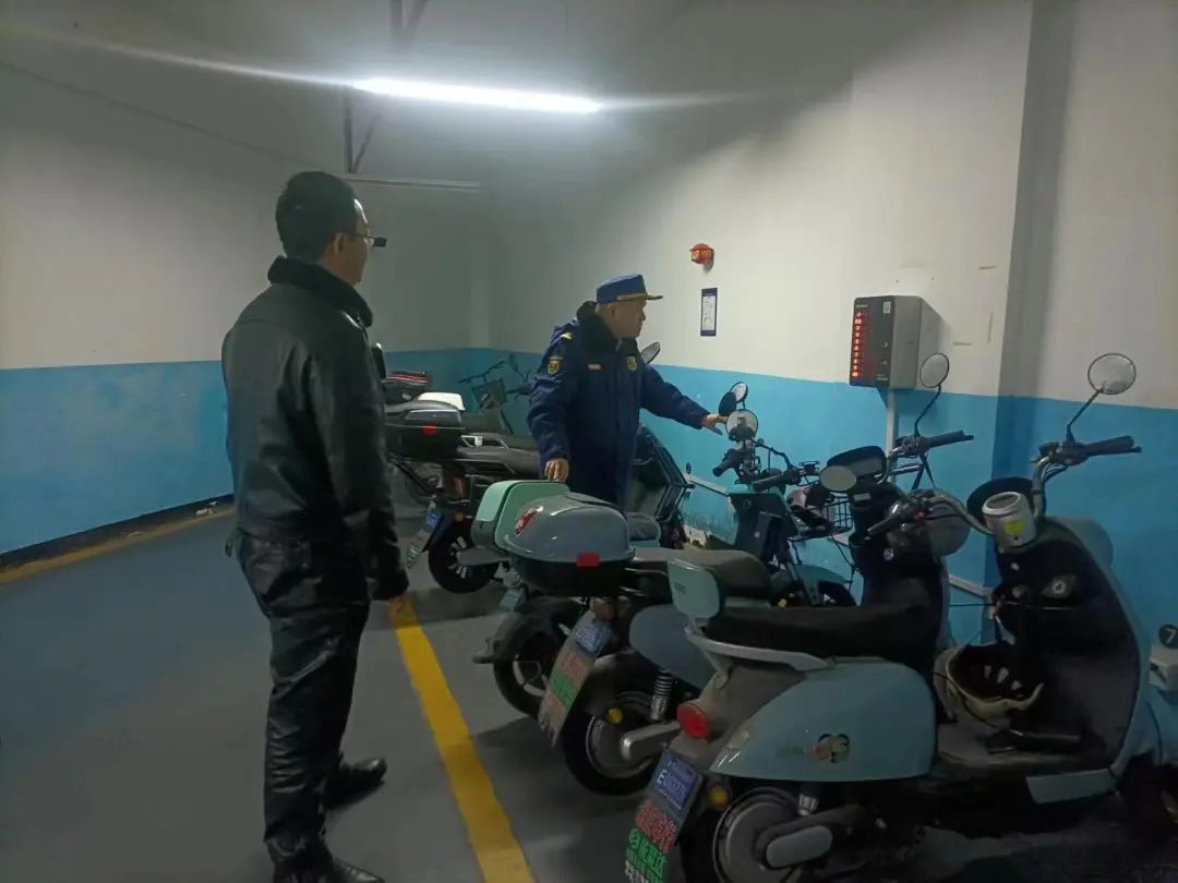 当晚,支队主要领导带队,联合公安派出所、街道、居委、物业等,重点对居民小区电动自行车集中充电场所、住宅楼道、微型消防站等开展联合检查,并对两个小区电动自行车多次被举报投诉开展实地核查。