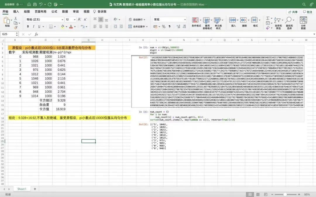 “你相信圆周率的小数点后的数字是服从均匀分布的吗?你如何论证?”《数理统计》课程的一道课后练习题引发了班级学生的广泛讨论。C++,python齐上阵,同学们纷纷晒出自己的分析成果,引发班级大讨论!