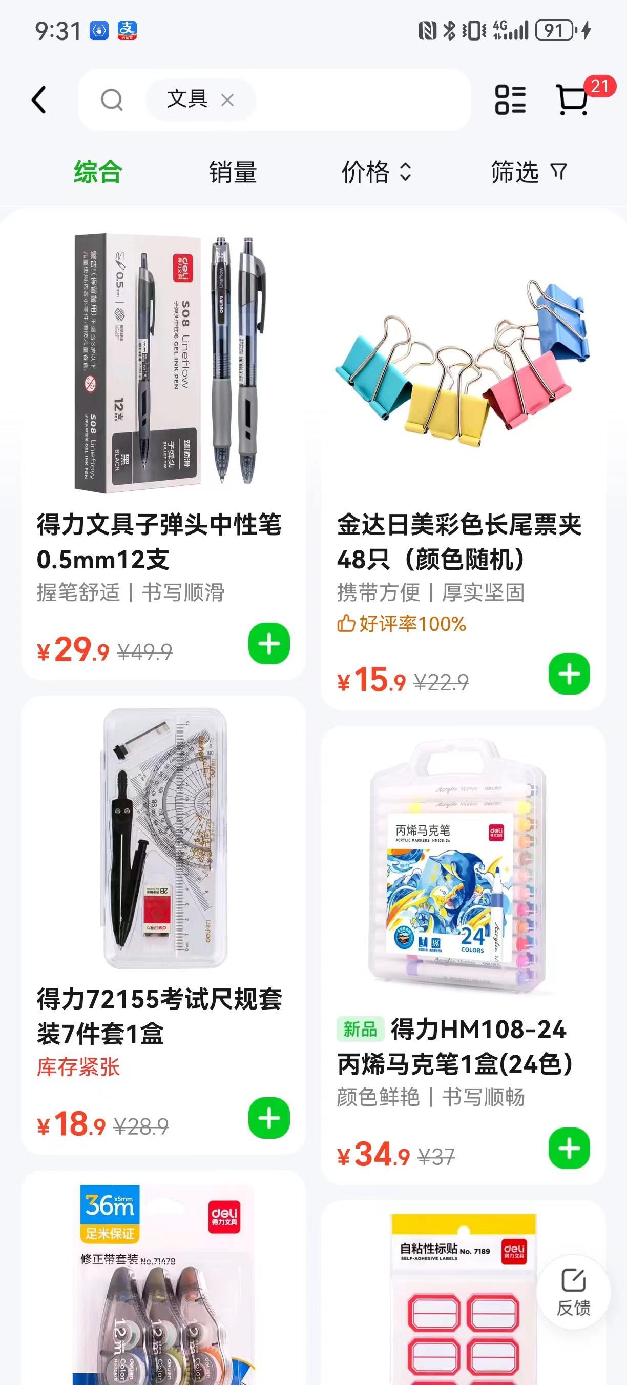 为满足开学季需求,小象超市平台上还同时上架了透明胶带、削笔机、订书机套装等用品。用户手机下单,30分钟快速送达,满足开学前消费者对于文具的需求。