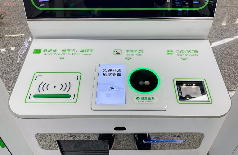 大多数乘客都选择传统的购票方式,只有一位乘客选择尝试了这种刷掌乘车的方式。