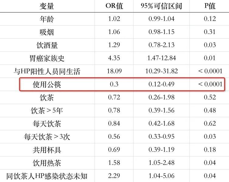 一项研究数据表明,使用公筷能显著降低幽门螺杆菌感染风险: