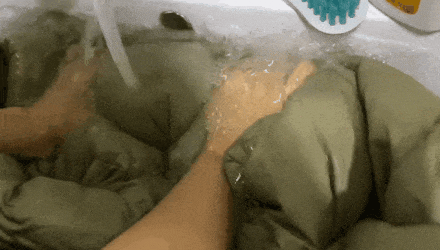 ④双手在水里抓捏羽绒服的各个部位,直至揉捏干净。