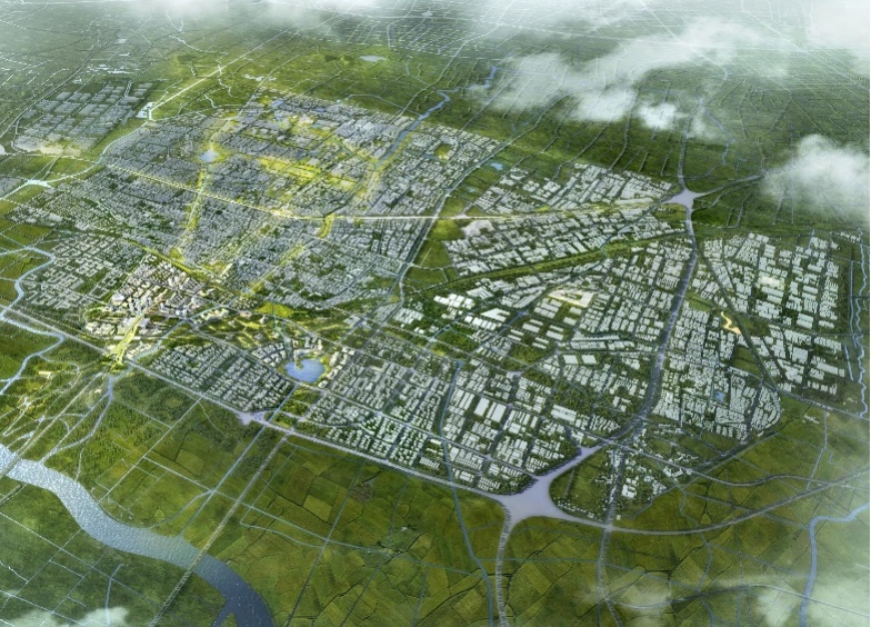 松江新城规划范围及城市设计鸟瞰图