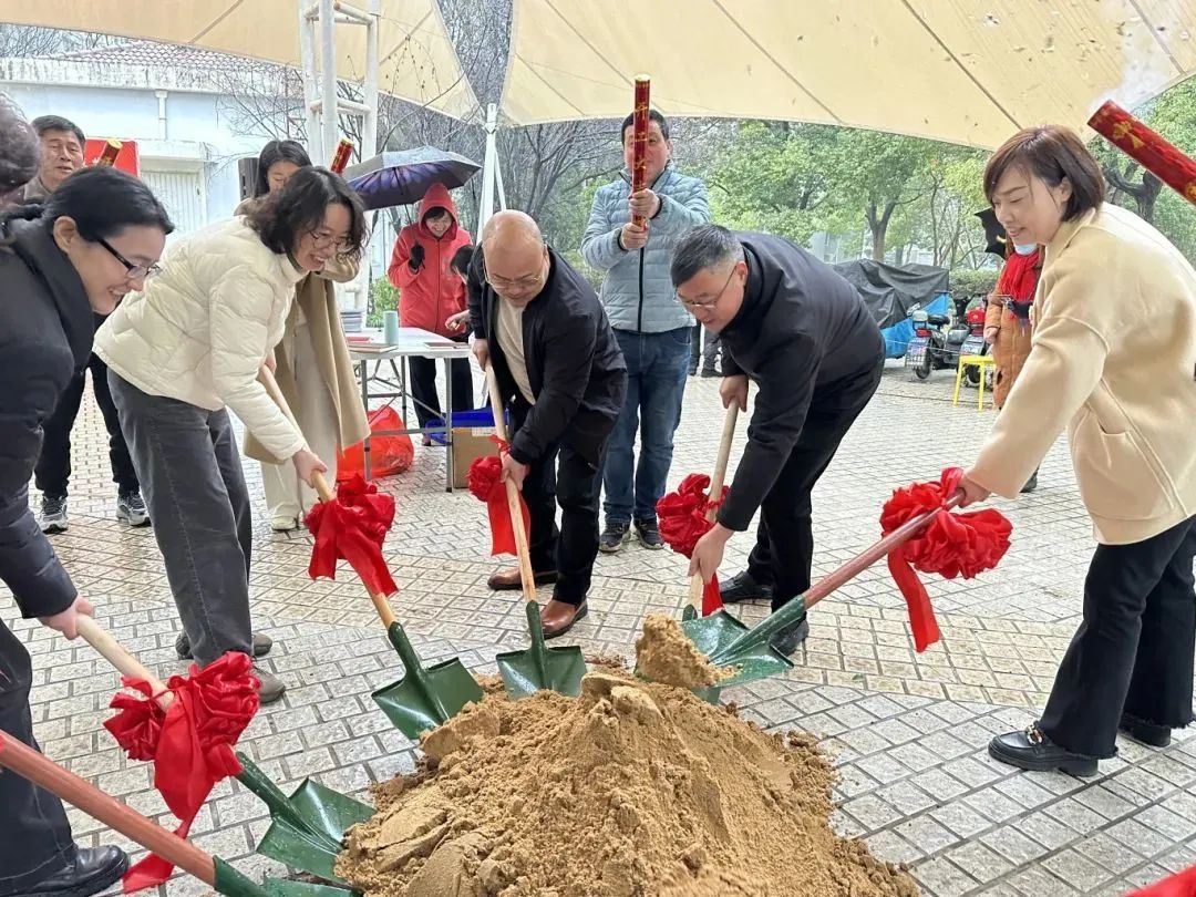 启动仪式上,各位代表共同培土奠基,标志着现代华亭既有多层住宅加装电梯正式开工。众多居民前来参观,共同见证仪式的启动,并祝福电梯能如期交付使用。