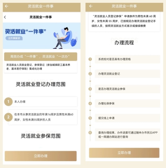 自今年3月1日起,灵活就业人员基本养老保险费比例由原来24%调整为20%,最近前来咨询的居民络绎不绝。为了更好地服务居民,新泾镇特意推出“泾”彩政务加油站系列小课堂,详细介绍“灵活就业”线上办理的流程和注意事项。 近日,张阿姨来到新泾镇社区事务受理服务中心咨询有关政策,“听说灵活就业缴金比例下调了,我女儿刚生完孩子,现在人在外地,想缴纳灵活就业,如何办理呢?”新泾镇新帮办政务服务队队员为张阿姨进行了详细的政策解读和业务指导,满足社区居民就近享受优质、高效政务服务的需求。下面一起来看看如何线上申请“灵活就业参保”相关业务吧! 第一步:灵活就业登记参保 1、打开“随申办APP”,搜索“灵活就业”,点击“灵活就业一件事”,阅读“灵活就业登记办理范围”“灵活就业参保范围”和“办理流程”后,点击“立即办理”。 2、进入后续页面,姓名、身份证号码会自动显示,请认真核对,核对无误后,选择对应“管理区县”,就业登记日期为办理当天日期,并在“灵活就业参保”选项内选择“是”,系统将自动生成缴费起始年月,参保类型选择“自雇人员”,完成后点击“下一步”。 3、页面提示“提交成功”,即表示已办理成功。 第二步:灵活就业及城乡居民个人委托扣款协议签订 1、在“随申办APP”首页搜索“灵活就业”,选择并点击下方的“灵活就业及城乡居民个人委托扣款协议签订”。核对缴费人信息,输入开户银行信息,点击“下一步”。 2、在授权书页面确认完信息后,点击“同意”,即完成协议签订,办理次月起每月11—15日之间会从填写的银行卡中逐月扣款,请关注卡内余额情况。 第三步:灵活就业人员缴费基数申报 1、在“随申办APP” 首页搜索“灵活就业”,选择并点击下方的“灵活就业人员缴费基数申报”。 2、日常申报页面填写养老、医疗两个险种的缴费基数,注意在要求范围内,确认后显示“申报成功”,点击完成。 据了解,女性未满40周岁、男性未满45周岁的居民,若想灵活就业参保,可按流程自行操作,如有疑问和首次参保的人员及超过以上年龄的本市居民,可至就近的街(镇)社区事务受理服务中心咨询后办理。不过,需要提醒市民的是,完成灵活就业相关流程,在后续扣款过程中,还有两个事项值得注意→ 1、若在集中扣款期间,因银行卡余额不足等原因没有扣款成功,确认该月需要缴纳社保,该月24日(含)之前可通过“随申办”进行操作。 “随申办APP”首页搜索“灵活就业”,选择并点击下方的“灵活就业人员社会保险费缴纳”,也可扫描下方二维码进入后续页面。 可选择为本人或他人在线缴纳。若为本人缴费的,直接点击“下一步”;若为他人缴费,需主动将“办理对象”修改为“他人”,并填写姓名与证件号码。 确认缴费人参保信息后,点击“下一步”核实缴费信息,点击“提交”完成缴费即可。 2、若要开具相关缴费证明,可在“随申办”APP首页搜索“灵活就业”。 在“随申办APP”选择并点击下方的“灵活就业及城乡居民社会保险费缴费证明开具”,点击右上角“查询”按钮,可选择为本人或他人打印证明。 若为本人打印的,选择“开具本人证明” ;若为他人打印的,选择“代开他人缴费证明”,并填写查询信息(证明开具时间段、险种选择全部)后点击“确定”。 查询到缴费信息后,点击“证明开具”,等待证明制作完成后查看缴费证明,保存图片到手机即可自行打印。 “泾”彩政务加油站系列小课堂 将带来更多线上业务办理指导