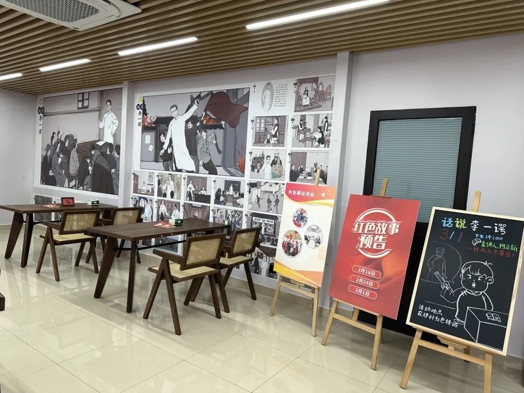 除了红色宣讲活动,大石头乡村茶室也成为红色文化宣传展示的窗口。茶室充分结合李一谔革命事迹等红色资源,在室内装饰布置、服务功能等方面都进行了完善。