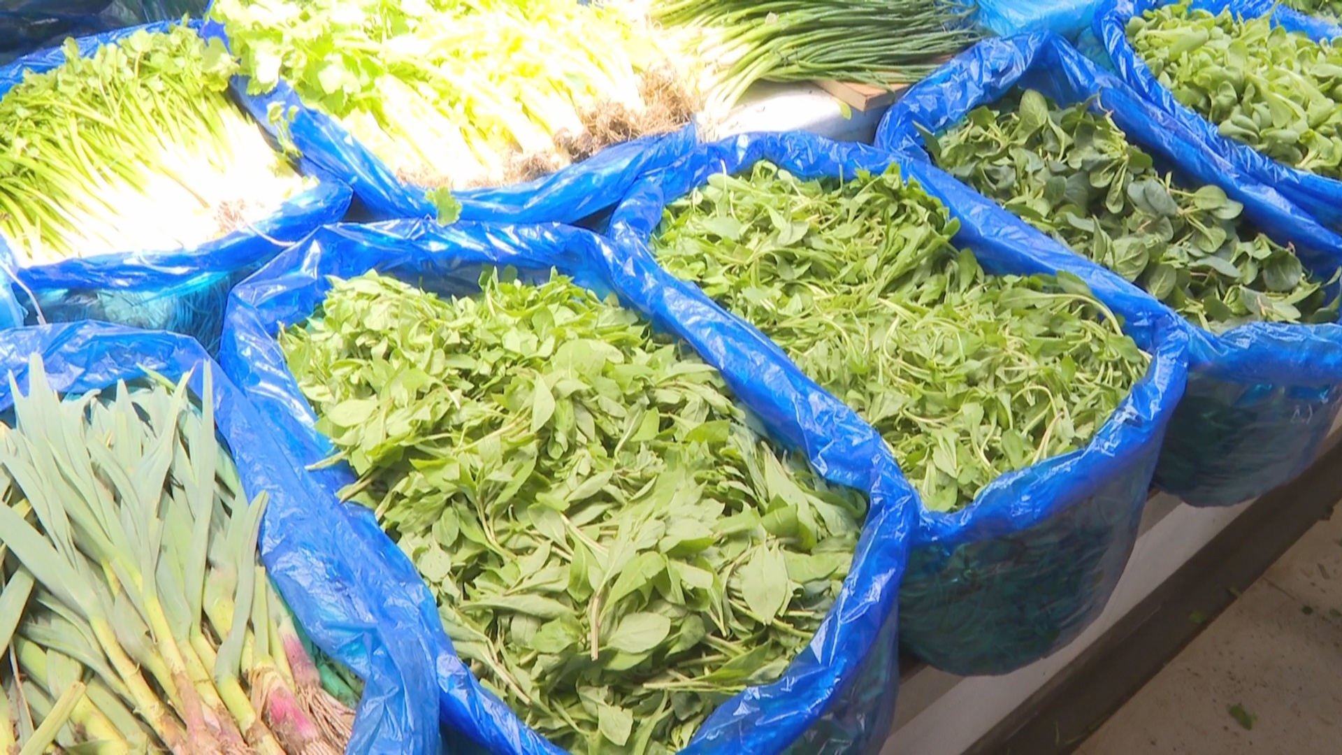 摊头上,一捧捧翠绿诱人的草头、枸杞头、马兰头等蔬菜,为市场带来了更多春天的气息。“现在春菜正是吃的时候,枸杞头和马兰头都是刚刚上市。这种梗子带红的是马兰头,过一阵子这梗子还要红,更好吃。”摊主介绍称,目前马兰头8元/斤,枸杞头15元/斤,十分受欢迎。