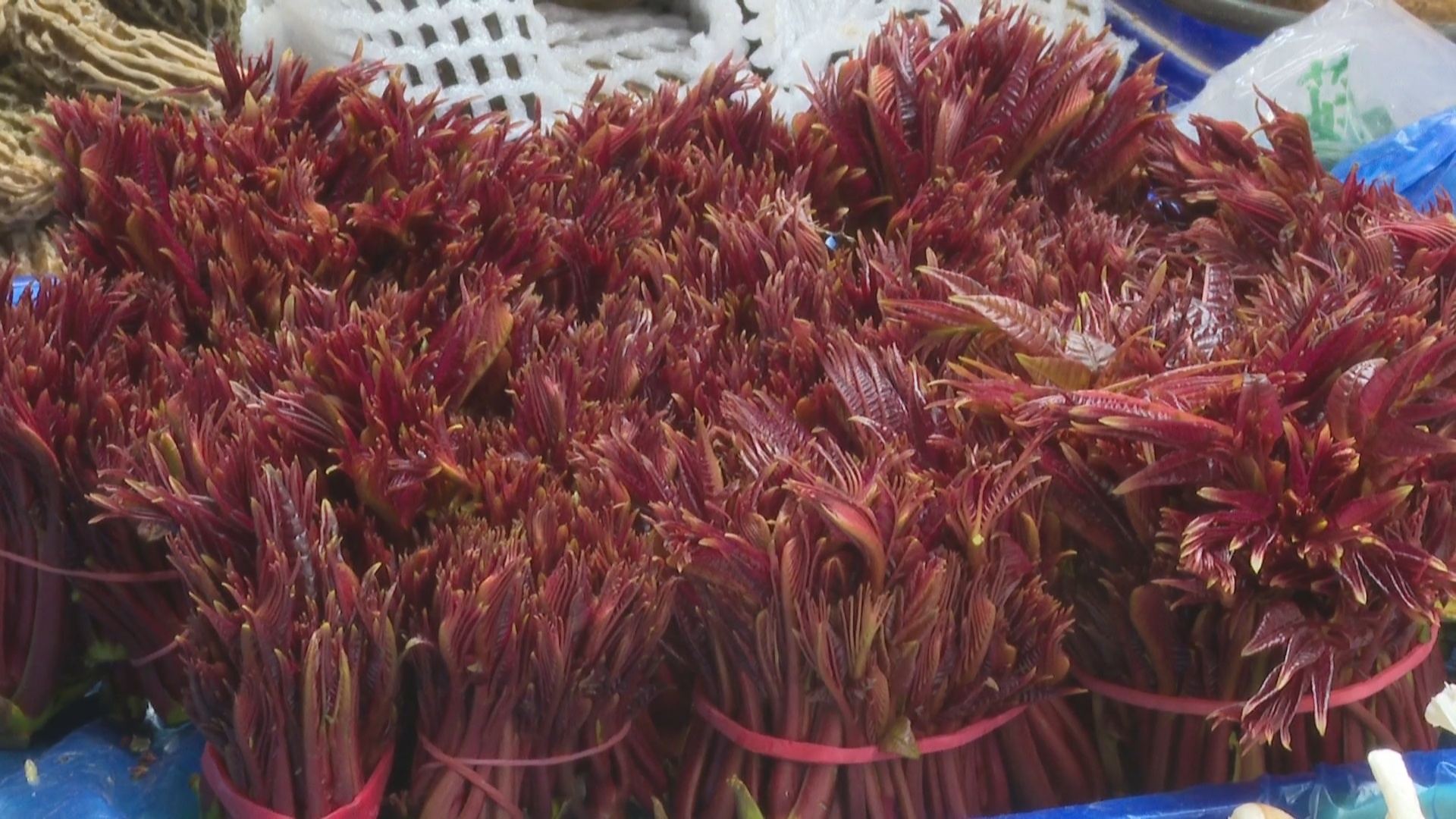 值得一提的是,刚刚上市的香椿依旧是春菜中的“贵族”。“这个香椿就是最近一两个月上市,再过就没有了。(现在)价格最高峰,下来的时候只卖三四十块钱一斤,就是4块钱一两,现在一两要18块。”摊主告诉记者,香椿烫一下,切碎豆腐一拌,再好吃不过。