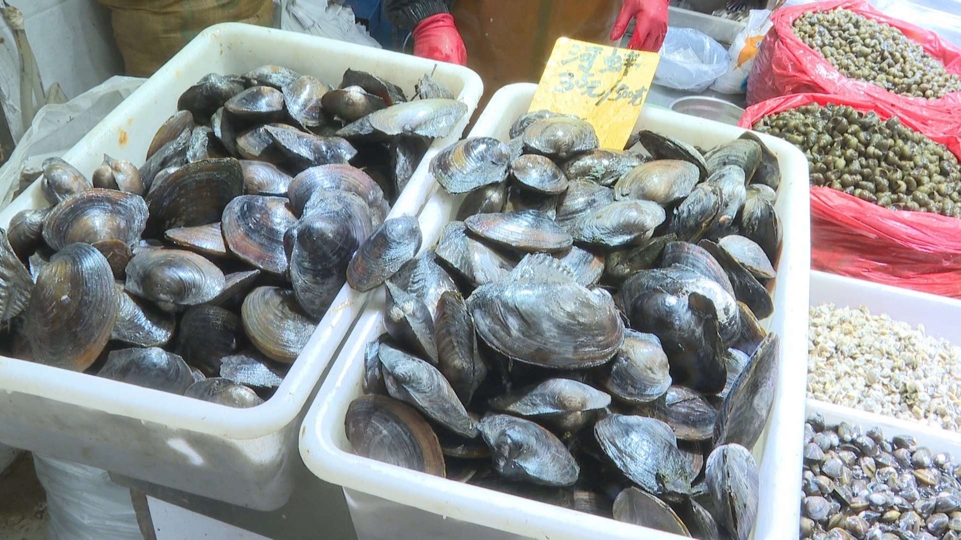 除了时蔬,河鲜也迎来大量上市。清明前,螺蛳肥美、蚌肉鲜嫩,正是最适合吃的时候。“现在就是吃蚌和螺蛳的季节,吃的人蛮多的。”在水产摊位前,摊主还向记者分享了蚌肉处理的小技巧,“(蚌肉)前面这块硬的地方,要用刀把它放在砧板上拍软,然后一切二、一切三都可以,放油里面稍微一煸,烧开后小火慢炖,像炖蹄髈一样,它就烧得酥。还有蚌肉侧边有一块脏的,里面都是污泥,要切开来处理掉的,好多人不知道。”