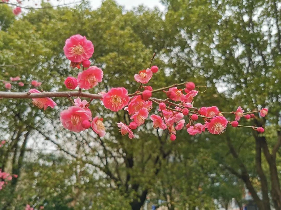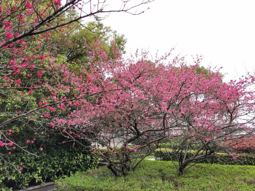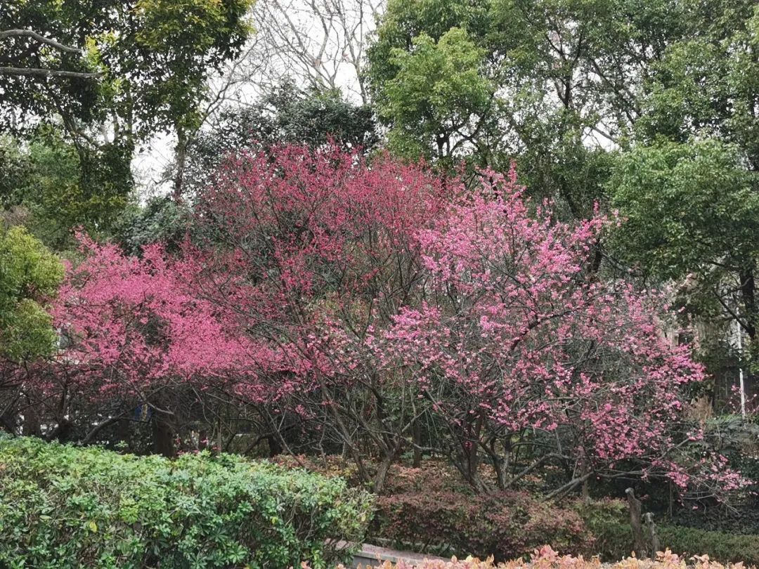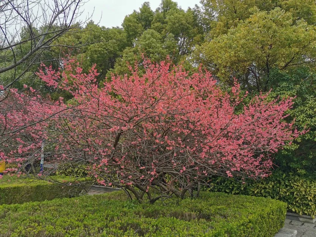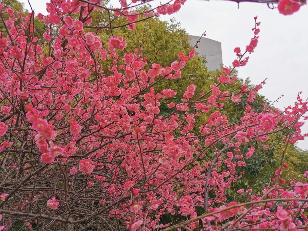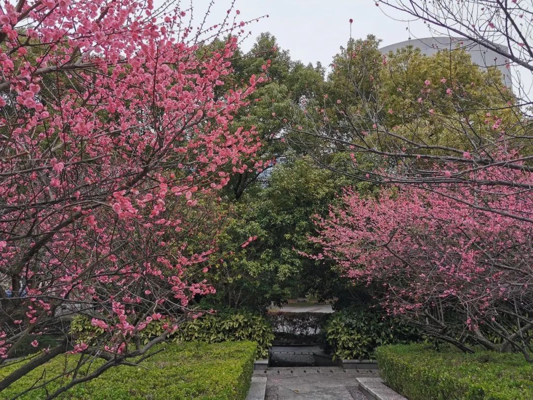 这是一个闹中取静的地方,它位于吴淞客运中心旁边的一角,是一个面积很小的“迷你公园”,植物的品类也不多。但是当你在冬春交替或者初春时节来到这里的时候,园中盛开的梅花定会让你眼前一亮!这里的梅花大多为粉色,梅花树的树形也比其他地方的要大一些,并且栽种的密度较大,盛花期的梅花树显得很集中,非常适合打卡、赏玩和拍摄。