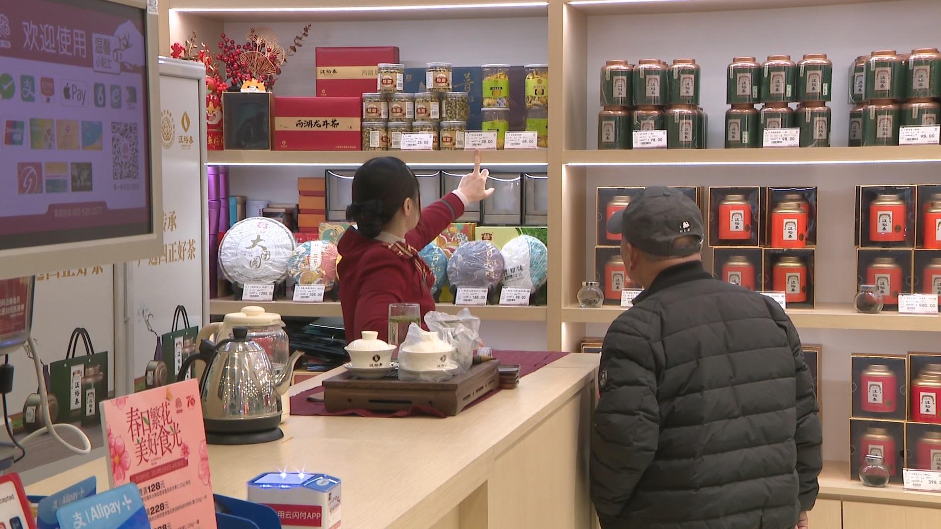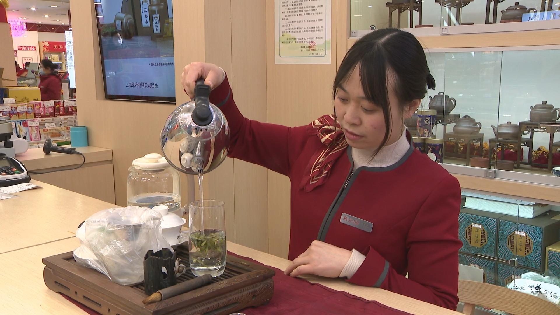 今天,记者在南京路步行街上的第一食品南东店看到,茶叶柜台前,新茶的招牌已经醒目摆放在显眼的位置。据介绍,目前上市的龙井是钱塘产区的新茶,只有一个品种,150元一两,市民阮先生每年进入三月都会到第一食品买点新茶。看到刚刚上市的新茶外观蛮好,品尝之后口感也不错,就决定买点回去。市民骆先生告诉记者,每年到了春茶上市,都会到产地去旅游,并买些春茶回去。今天是到商店里来看看行情。