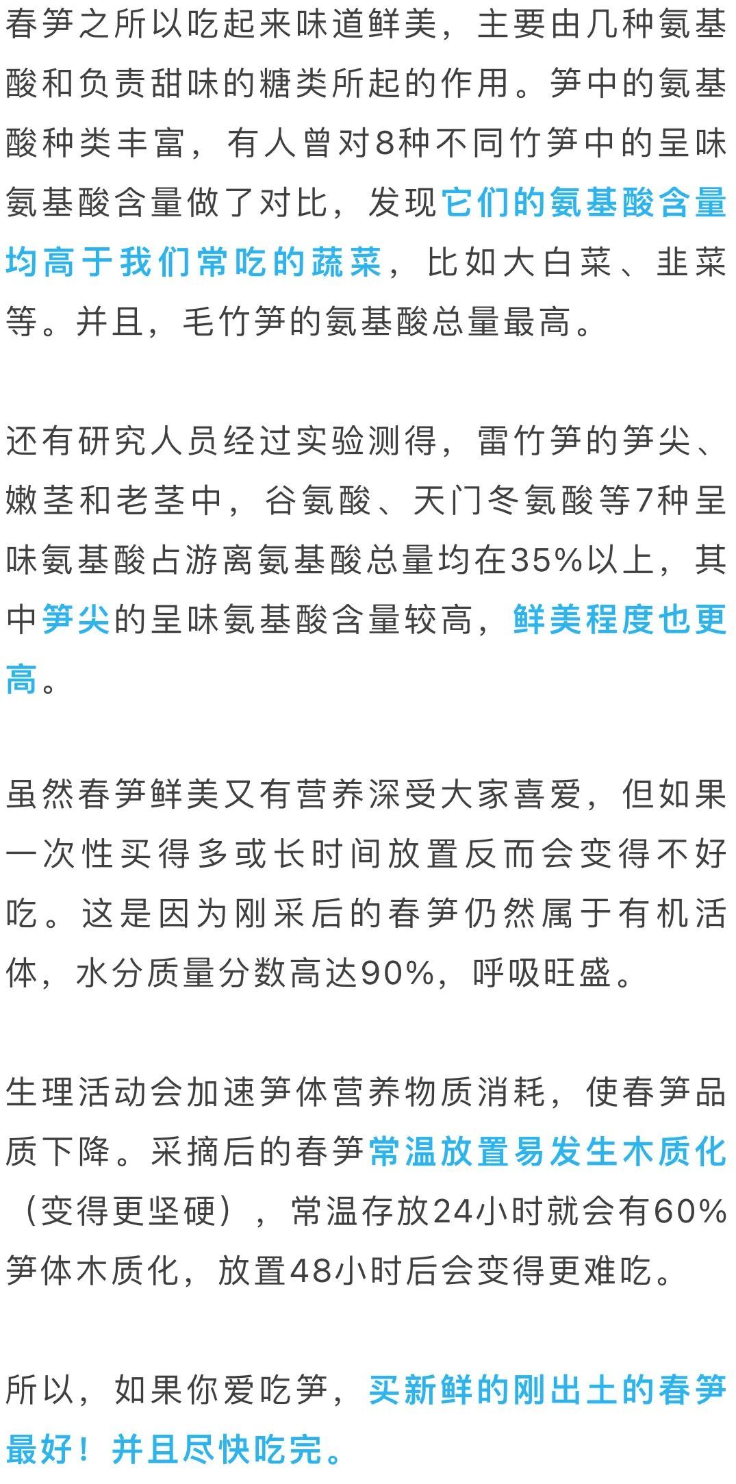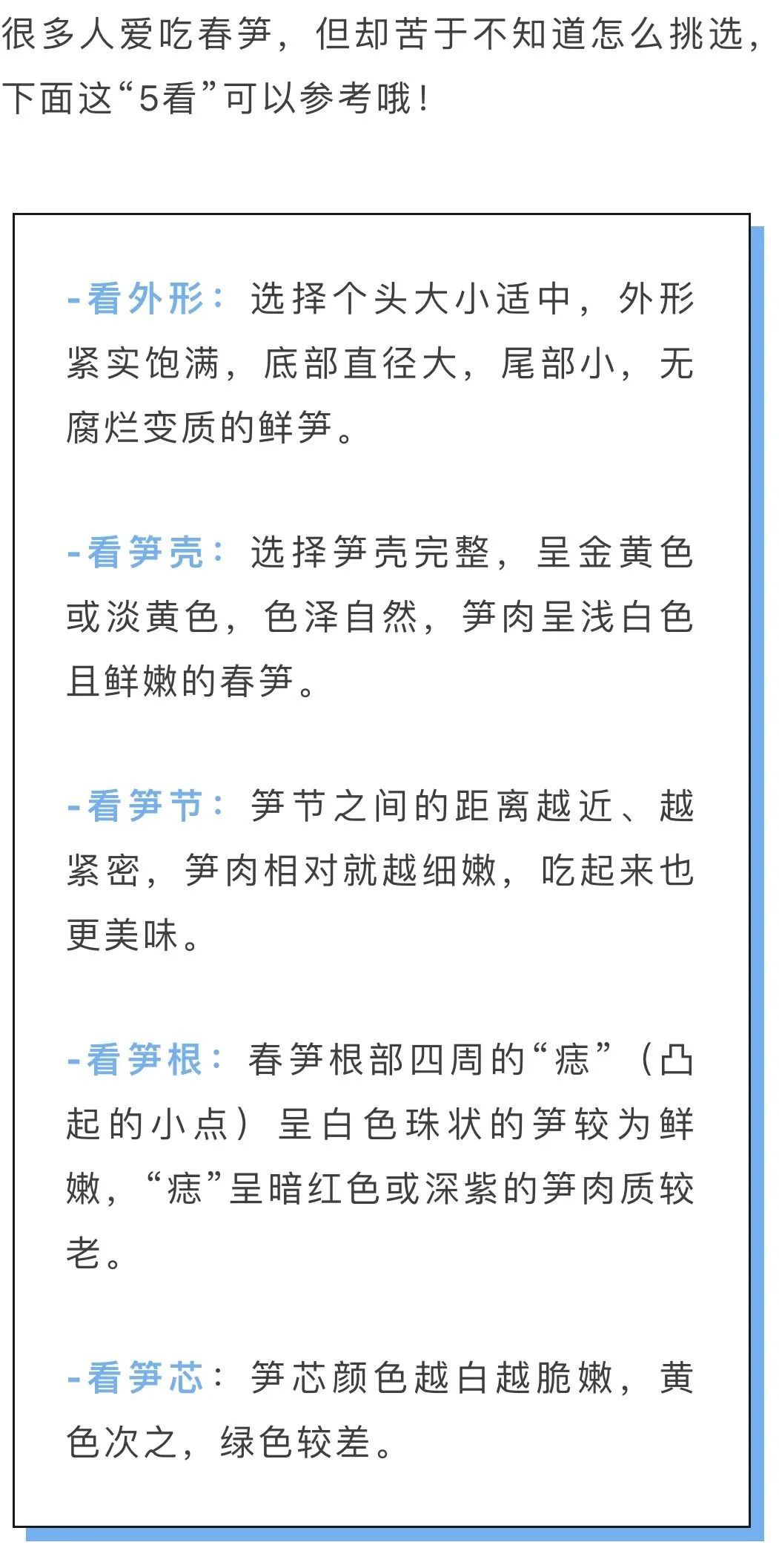 腌笃鲜、竹笋炒肉、油焖春笋、香菇焖春笋......春天到了,正是吃笋的好时候!春笋素有“素菜第一品”的美誉,不仅脆嫩鲜美,还富含膳食纤维、钾等多种营养物质,此外,春笋的热量也很低。