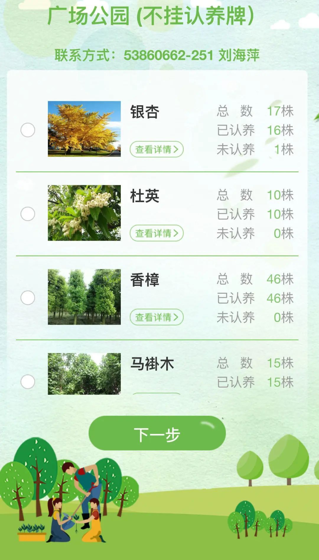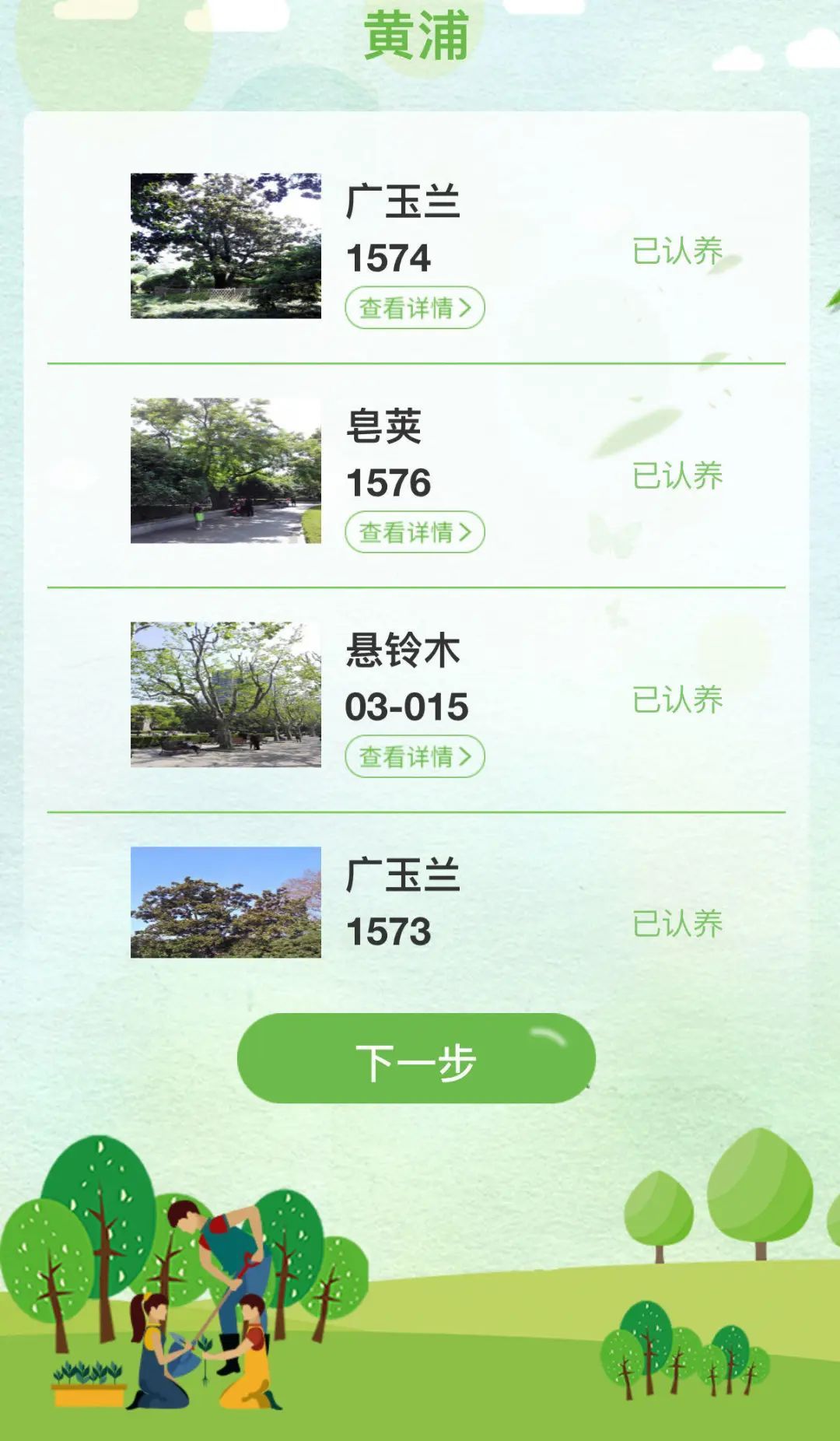 记者登录“绿化认建认养”平台发现,黄浦提供的公园树木以及古树名木认养名额已经所剩无几,几乎全被认养。广玉兰、雪松、悬铃木等寓意较好的树种,更是一上线就被抢空。近40棵古树名木,也几乎都“名花有主”。