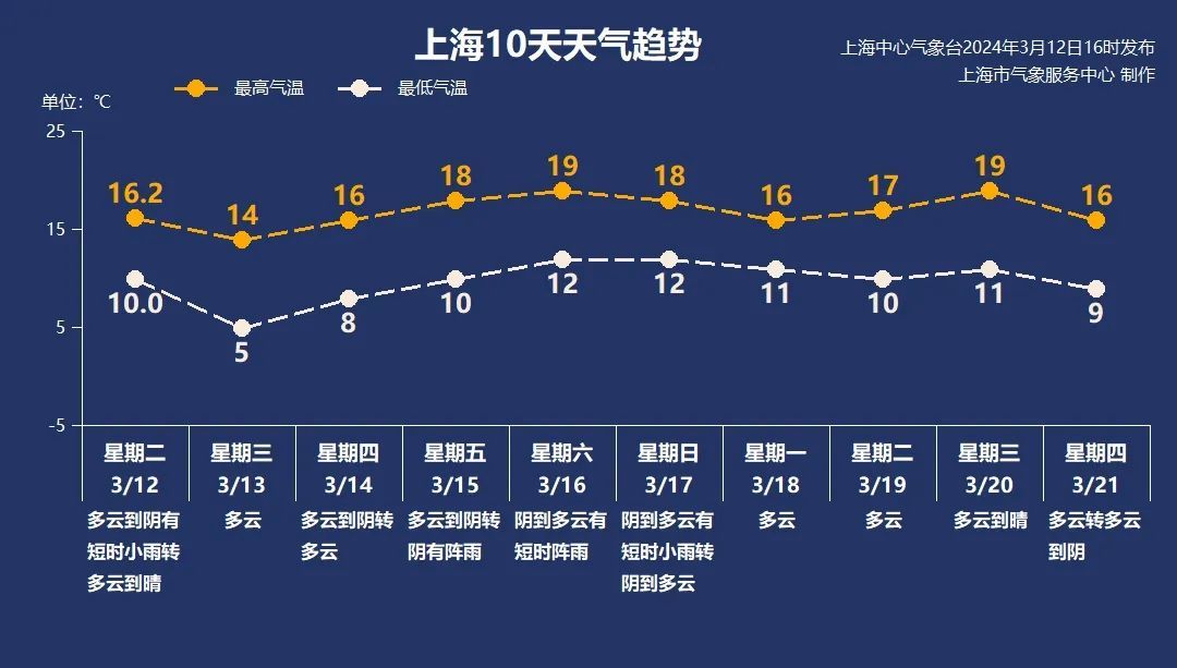 未来一段时间,气温稳步上升,入春进程加载中~本周五至周日,暖湿气流加强,最高气温接近2字头,可达18~19℃,最低气温也站上10℃大关,升温的同时,也会出现降水,雨具要常备身边。下周晴好天气回归,春意融融,赏春花、看春景,魔都的春天你期待吗?