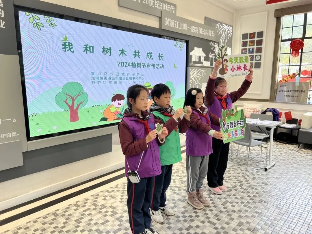 “为弘扬伟大抗战精神,小岛命名成了什么?”“白庐哪里可以270度观景?”日前,复兴岛公园党群服务站携手齐齐哈尔路第一小学分校,举办“绿化城市,共创美好未来”植树节主题活动,在大自然中开展思政课堂,用行动践行环保理念。