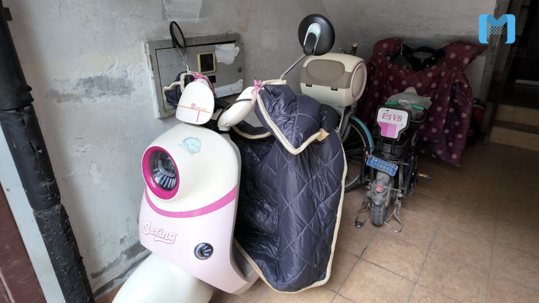 记者进入该小区,随机暗访了6栋高层住宅和12栋多层住宅,发现其中半数以上的居民楼的底楼公共楼道里,都停放着电动自行车,有的楼道里少则停放着1辆,最多的停放了5辆,楼道内张贴的消防通道禁止停车堆物和安全告知书形同虚设,有人把电动车安全帽直接挂在墙上,有人从三楼飞线到地面给电动自行车充电,而在居民楼的旁边,就有室外集中充电的车棚。