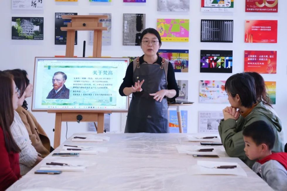“《野玫瑰》创作于梵高人生的最后阶段,他在用生命作画,你能从中感受到他的激情。”艺术老师结合梵高的生平,向参与活动的学员解读该画作:这是一幅深受日本版画影响的作品,梵高将立体的花朵、叶子平面化处理,在画面中表现为一种平视、甚至略带仰视的视角。“艺术是能把梵高从困苦的生活中救赎出来的东西。哪怕是天地间不起眼的一草一木,梵高都认为值得用生命去表现、去讴歌。”