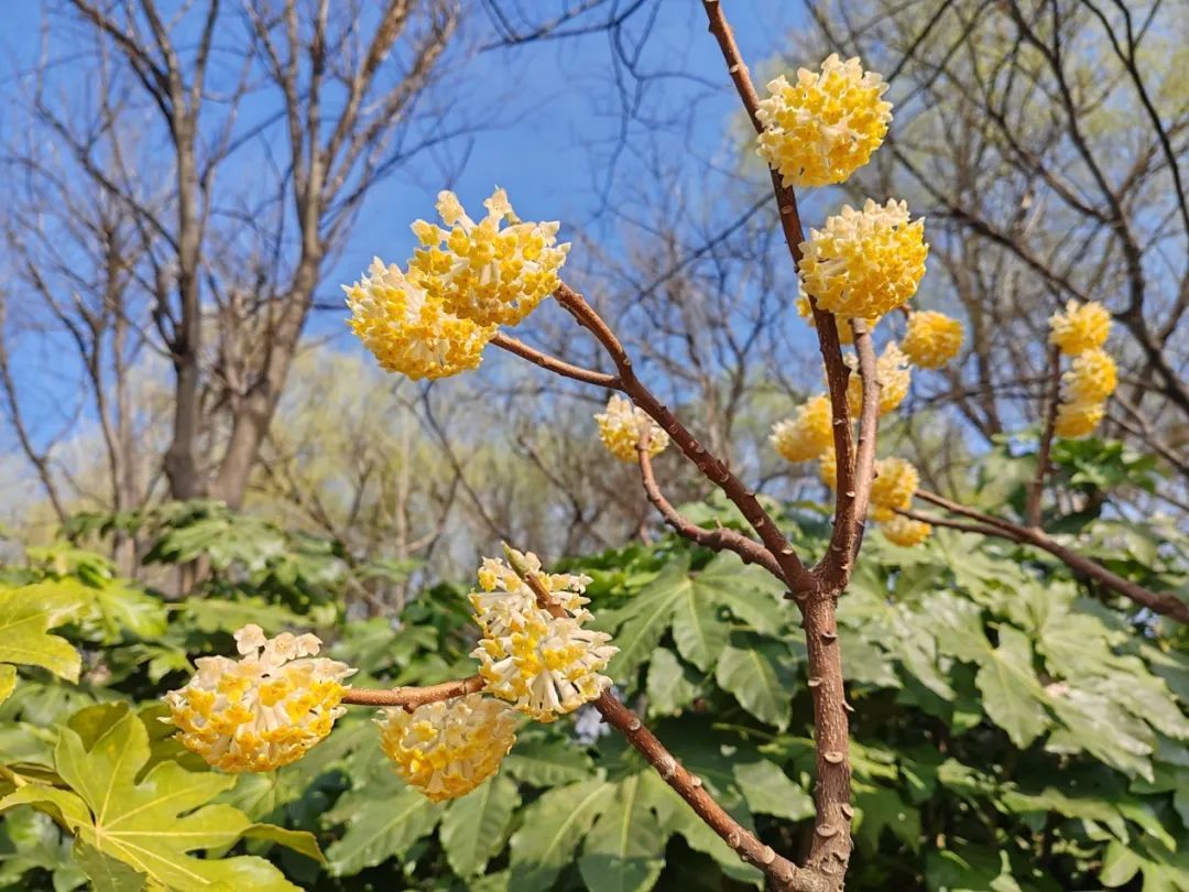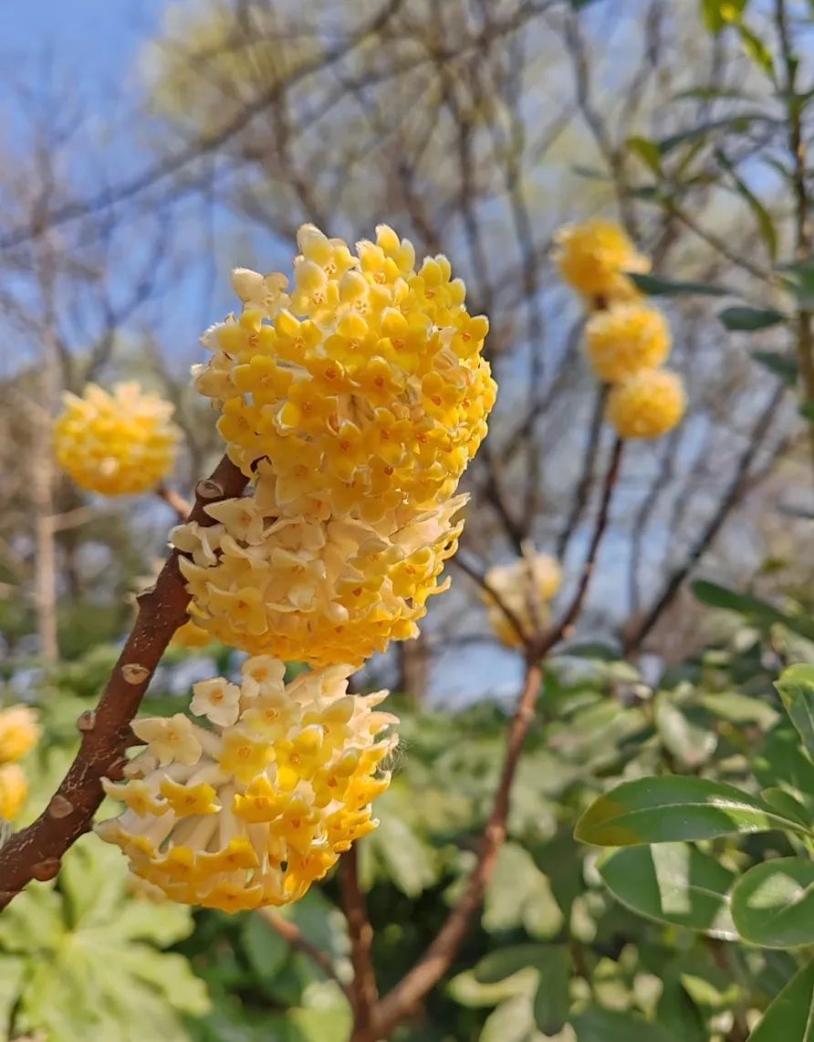 低矮的灌木丛中,花瓣神似菌菇的黄色小花明媚可爱,这便是结香花了。结香花常常30—50朵结成绒球状,外围则有10枚左右被长毛而早落的总苞。别看结香表面细嫩,实则生长健壮,适应性强,病虫害少,也是一种适宜栽种的园林植物。