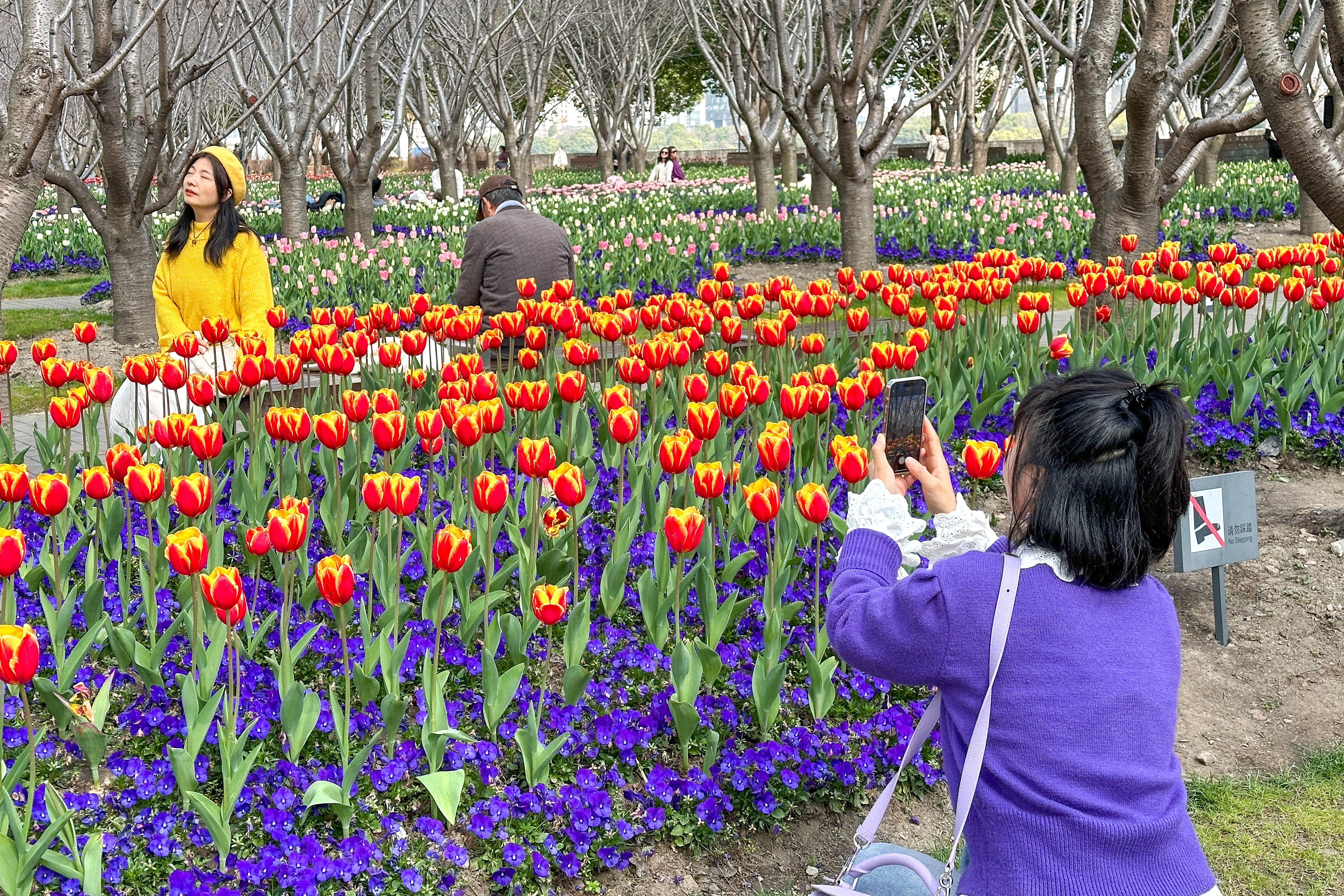 近日,位于黄浦滨江的琴键春园正盛开大片早樱与郁金香,吸引了众多市民游客前来观赏,成为了春季黄浦区的经典打卡地。