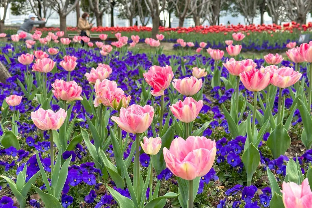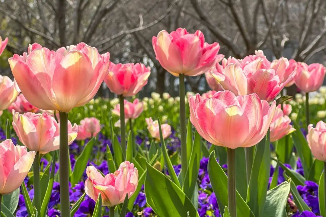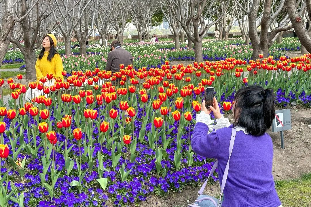 琴键春园是原上海世博会外围的绿地,园区面积约8500平方米,内有各种樱花树250余株,4000平方米的郁金香。从高空俯瞰,浓情绽放的鲜花形成了一道道条状色块,与休闲步道间隔,形似钢琴键盘。游客穿行在黄浦滨江的绿道上,一边是无敌江景,另一边是繁花春色,尽情奔跑或是惬意漫步,享受滨江最美春景。
