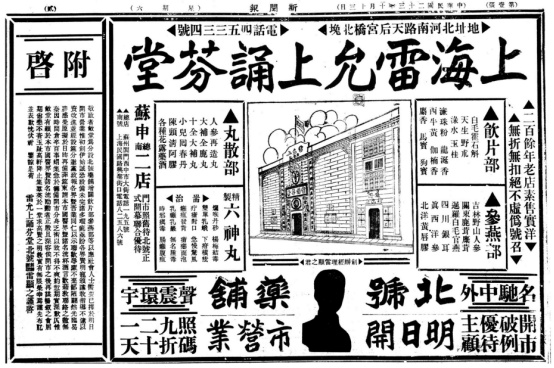 ▲雷允上北号开业广告,来源:《新闻报》1932年10月13日