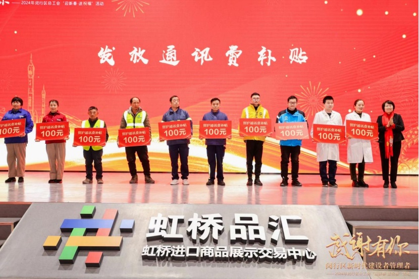 在元旦春节期间,为万名坚守岗位的留沪外来城市建设者送拜年通讯费,助力外来建设者度过健康、欢乐、祥和的节日。