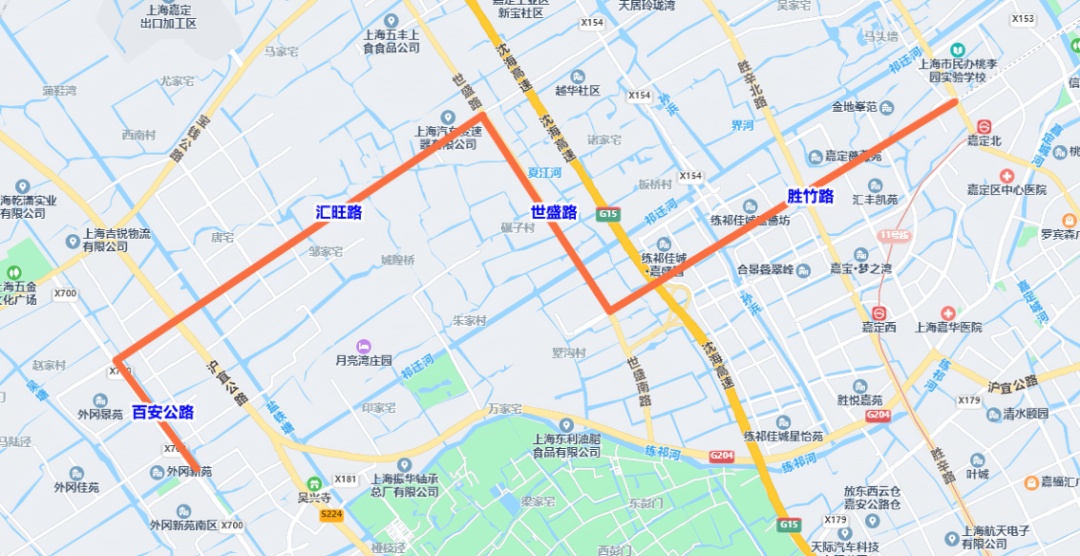 按照规划,嘉定局域线(中运量)示范线西起外冈汽车站,东至嘉定的日月光首末站。线路途经百安公路、汇旺路、世盛路、胜竹西路、胜竹路,全长约11公里,将建设11组22座中途站。
