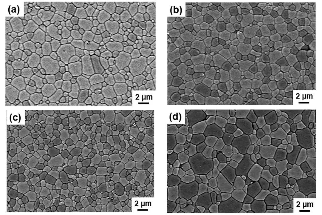(a)-(d)x wt%Al2O3-YAG:Ce(x=20, 30, 40, 50)复相荧光陶瓷的FESEM形貌照片