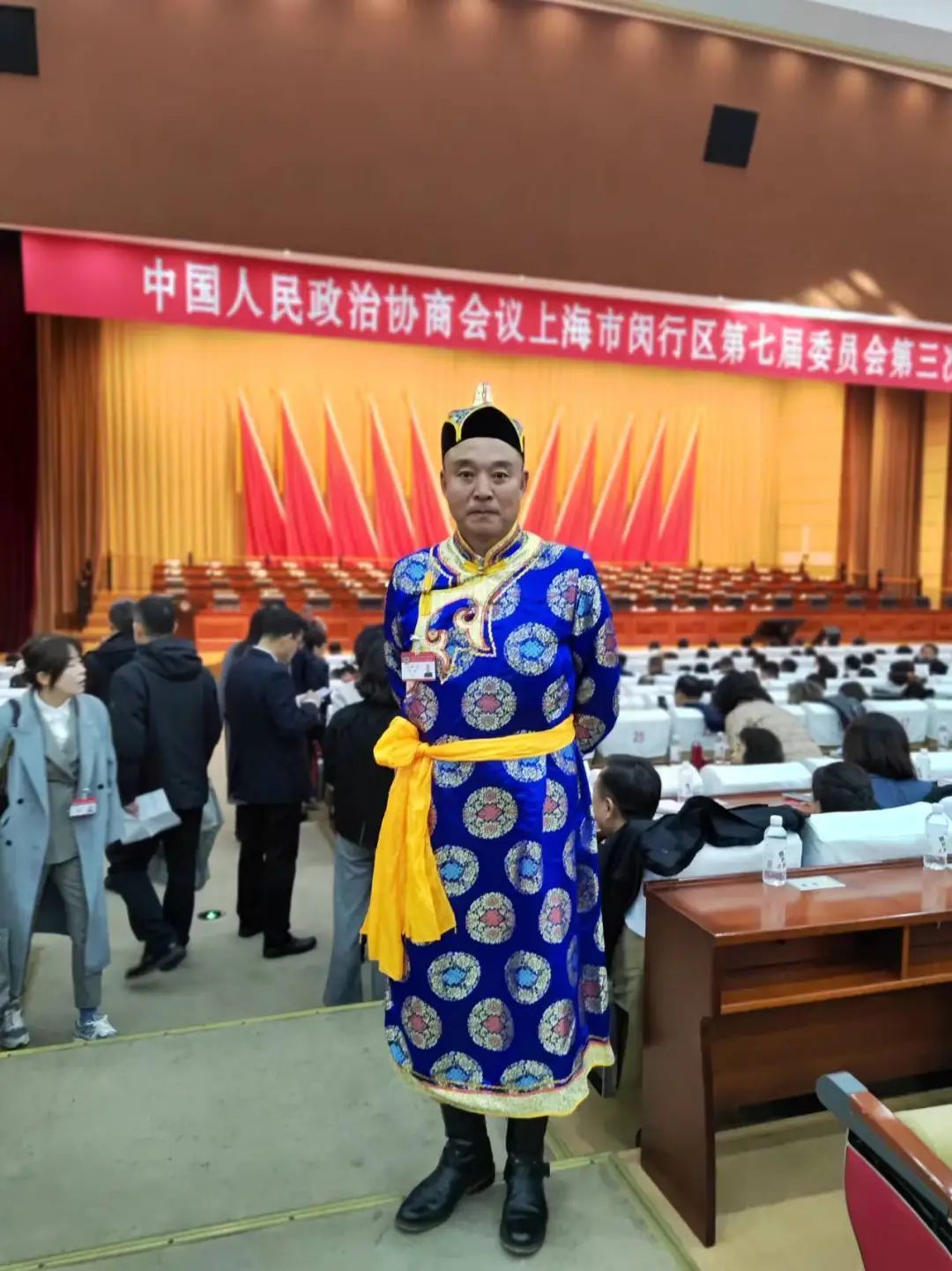 每年的闵行两会,范晔和其他少数民族委员都会穿着自己民族的“传统服饰”出席开幕式,他说:“穿着自己民族的服装盛装与会,这是闵行的创举,也是我们闵行政协践行民族团结的、靓丽的‘文化符号’。”