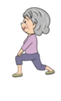 ②左右转移:双手叉腰,双脚分开与肩同宽,右脚向前迈一大步,双手扶右膝,向前屈膝弓步,随后伸直右膝,身体直立,将重心转移到左脚后,把右脚收回;用同样的方法进行对侧练习。重复以上步骤10次。