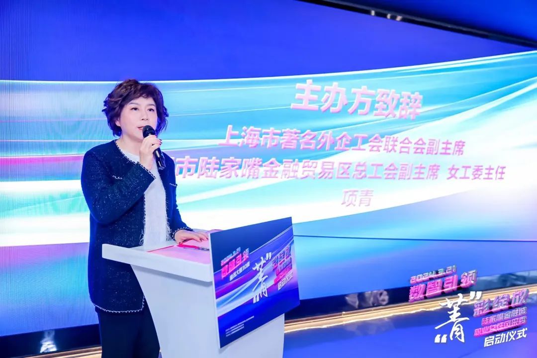 启动仪式上,上海市著名外企工会联合会副主席、上海市陆家嘴金融贸易区总工会副主席女工委主任项青致辞表示,新时代是奋斗者的时代,也是女性大放光彩、平等竞争的时代。陆家嘴金融贸易区总工会将通过打造精彩纷呈的系列活动,聚焦陆家嘴职场女性的赋能建设,加强不同领域之间的交流合作,最大程度地用好创新资源,增加陆家嘴地区女性创新人才后备力量的培养,充分展现新时代女性的特有的风采。