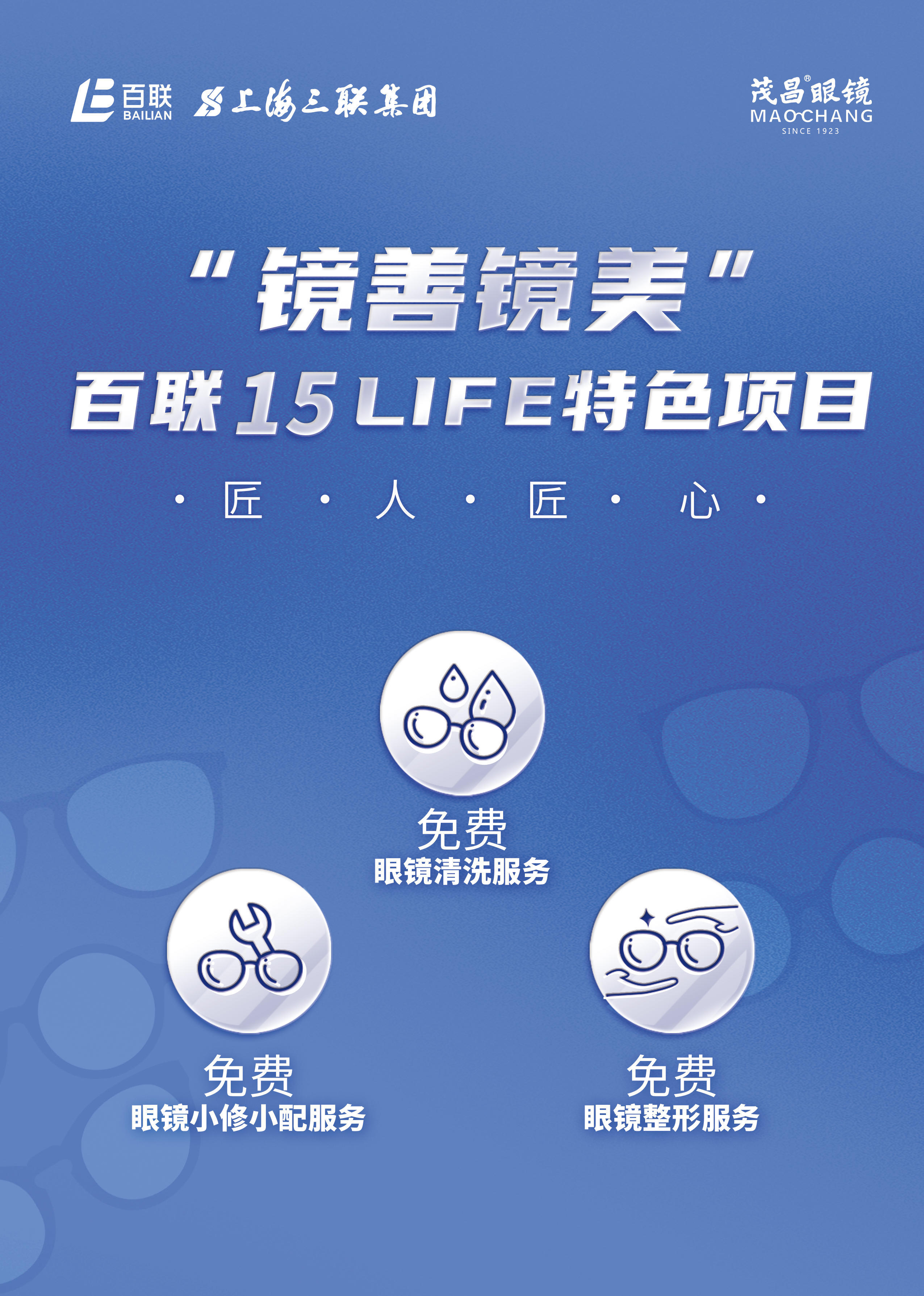 三联公司旗下的老字号品牌吴良材眼镜与茂昌眼镜,逐步在门店开展“镜善镜美”特色服务,包括为入店顾客提供免费眼镜清洗服务,免费小修小配服务,免费眼镜整形服务等,以及科普眼镜日常护理和保养知识。首批六家门店将于即日起试点推广,其余60余家门店计划在今年五五购物节期间全面推行。