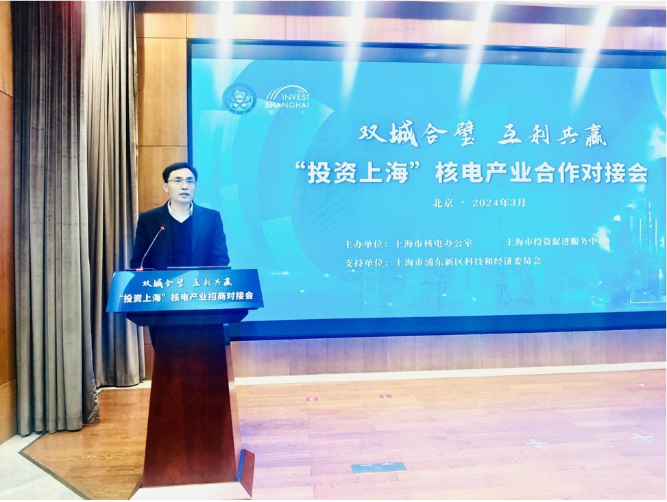 市核电办有关负责同志介绍《上海核电产业高质量发展行动方案(2024-2027年)》总体情况,市投促中心、浦东新区科经委和上海交易集团有关负责同志作了招商引资推介和相关业务展示,市经济信息化委重大装备产业处相关同志参加会议。