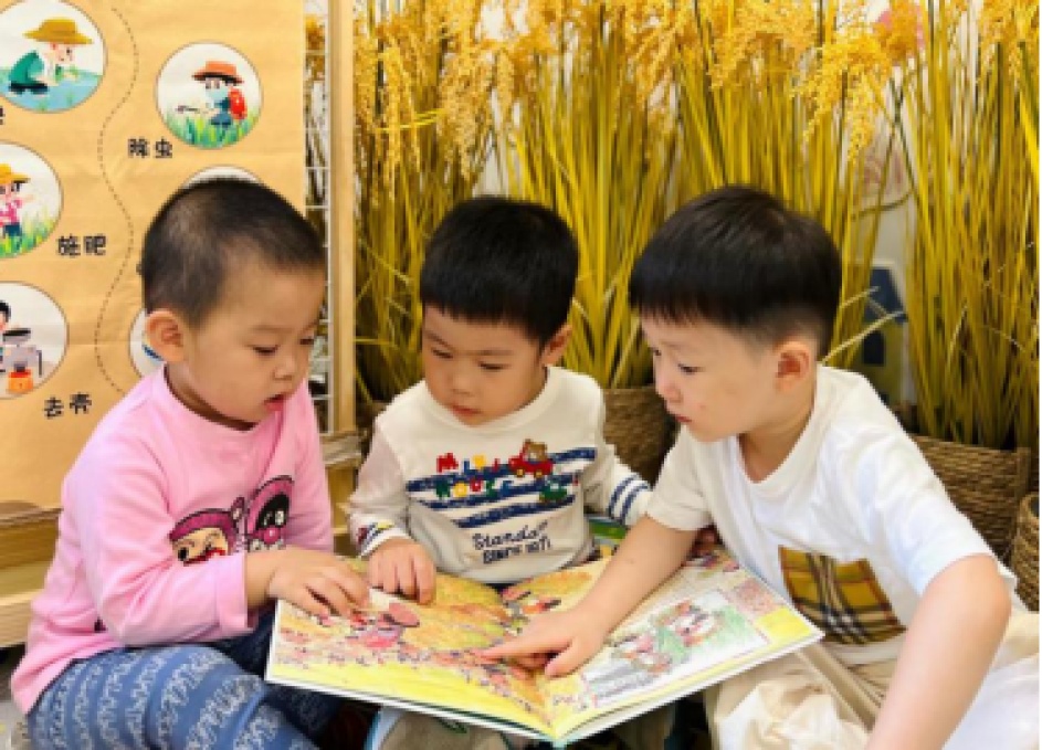 孩子们在托儿所享受阅读时光
