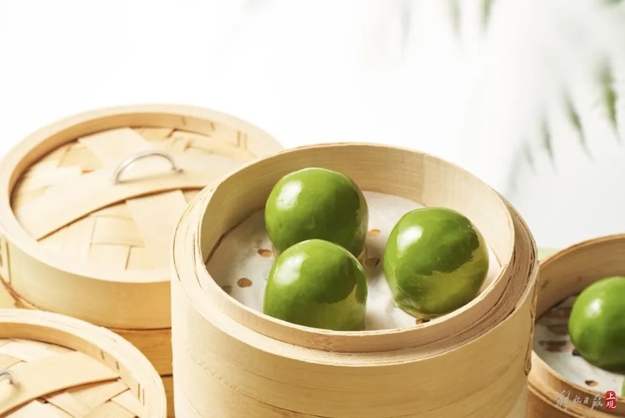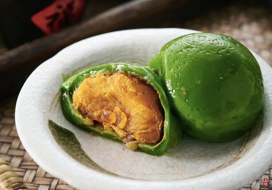 听到这个评价,姚建华笑了:“这绝对是懂经的‘老吃客’。”艾叶细沙青团是王家沙的招牌产品,选用的是海门大红袍赤豆,运用传统铁锅明火纯手工炒制,豆沙更香细腻,一抿就化。同时,选用了宁波野生艾叶制作的青团,蒸出来能看到艾叶的纹理,吃起来更有独特的青草香。在中华老字号上海德兴馆(昌里路店),外卖窗口摆上了两组“绿胖子”——豆沙、咸蛋黄肉松口味青团。这几天,许多顾客买完点心、熟菜之后,再买上一盒青团成了“规定动作”。