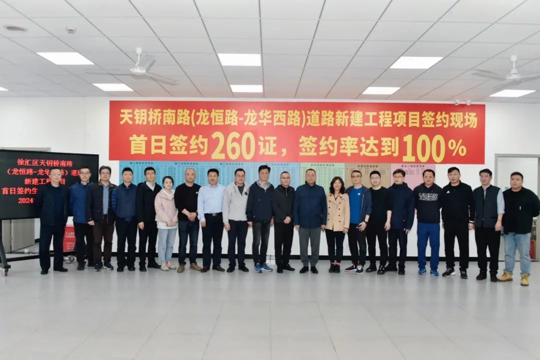 3月24日徐房集团所属上海徐汇第三房屋征收服务事务所有限公司负责实施的天钥桥南路(龙恒路-龙华西路)道路新建项目征收工作,100%完成签约选房!徐汇区委书记曹立强到征收签约现场,对该征收地块签约成功表示祝贺,同时对天钥桥南路基地各相关单位及工作人员的辛勤付出和取得的成绩表示高度认可,并指出,徐汇区未来的征收工作要以城市旧改更新为契机,秉承“儿女之心,儿女之情”,再接再厉有效推进徐汇区民生改善、品质提升,做好中心城区高质量发展大文章。