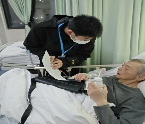 工作人员赴医院探望居民黄老伯