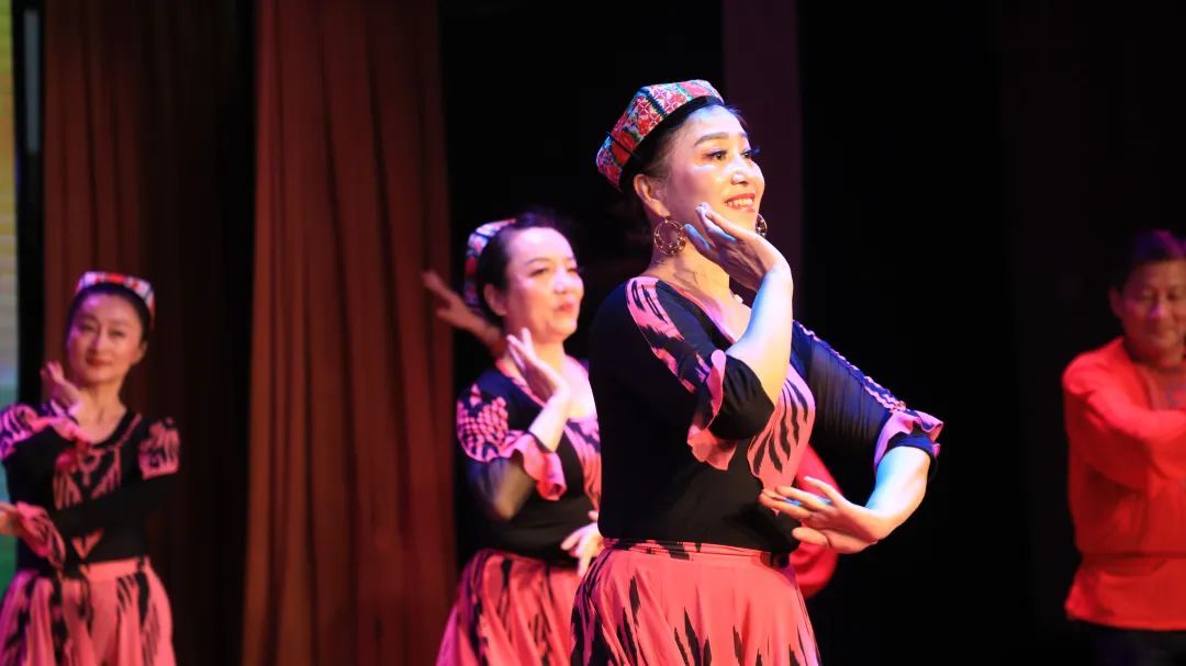 上海纳瓦舞蹈团的新疆舞蹈《麦西来普跳起来》带领观众进入了异域风情的欢快氛围,开启了本次汇演的序幕。紧接着,公园道声乐自治团队的大合唱《中国,中国,鲜红的太阳永不落》以激昂的旋律和深情的歌词,激发了现场每位观众的爱国情怀。