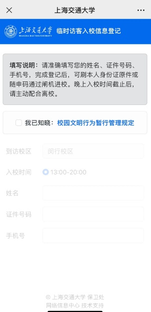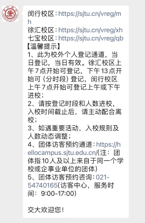 上海交通大学闵行校区根据规定社会公众进校当日可在上海交大公众号上提前预约预约成功后凭身份证或随申码即可入校