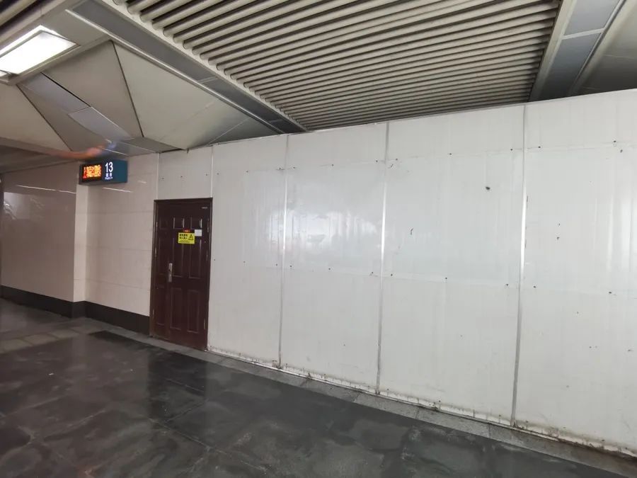 从这个缺口看去:通道全长仅二三十米,宽不过六七米,一旦打通,从铁路出站前往地铁三、四号线站厅的距离将大大缩短。不过,通道内看起来还是未完工的毛坯状态,如果选择启用,地铁和铁路双方要对通道进行翻修并添置设施。
