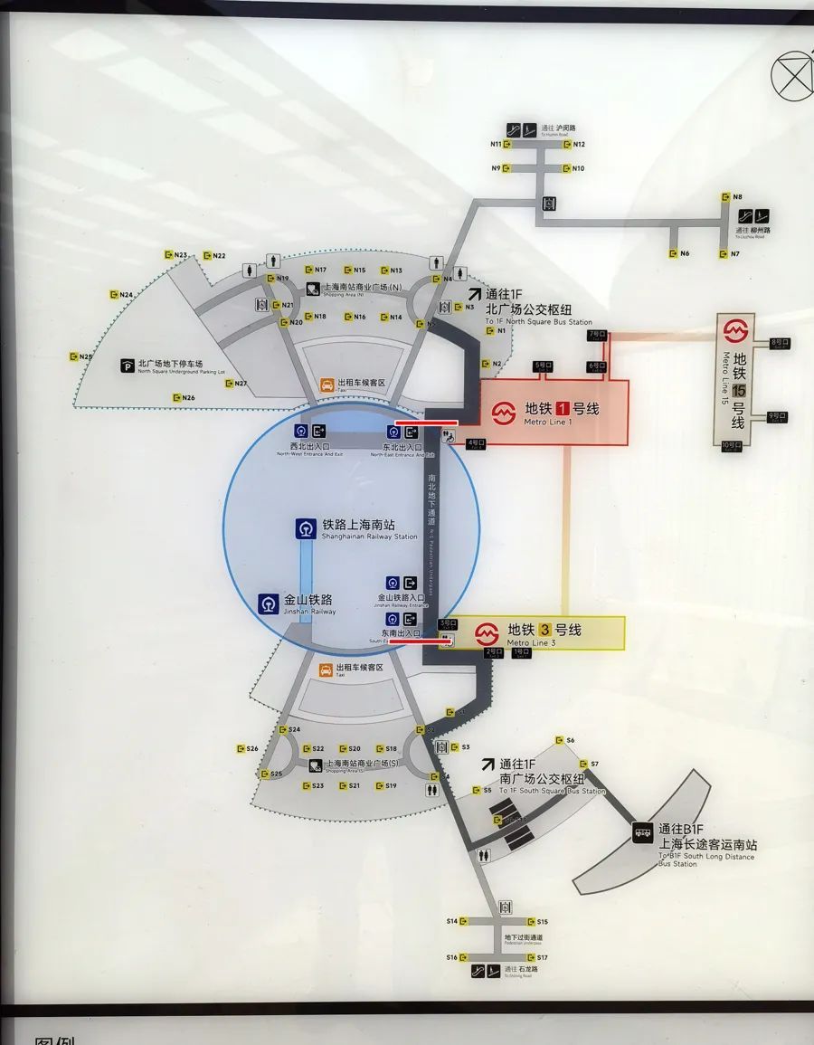 和上海站相比,上海南站先天条件要差一些,建设时并没有预留和地铁的直联通道。