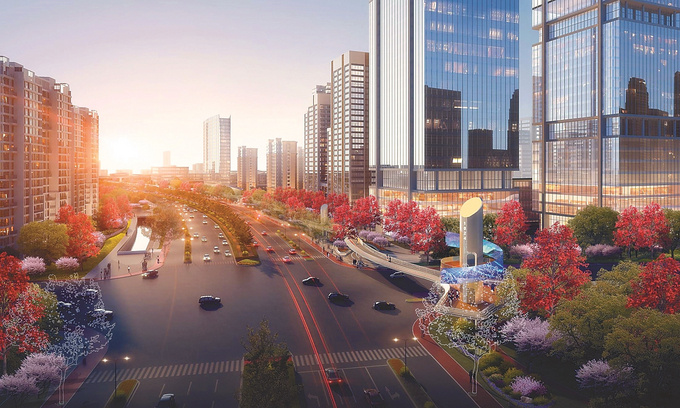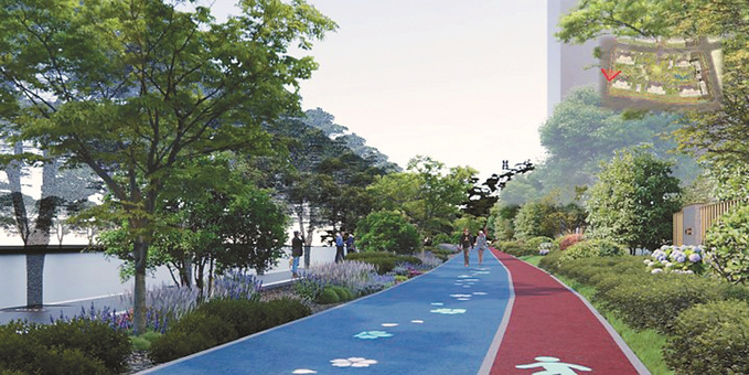 雨花数字城核心区线性公园中的红蓝“项链”(效果图)