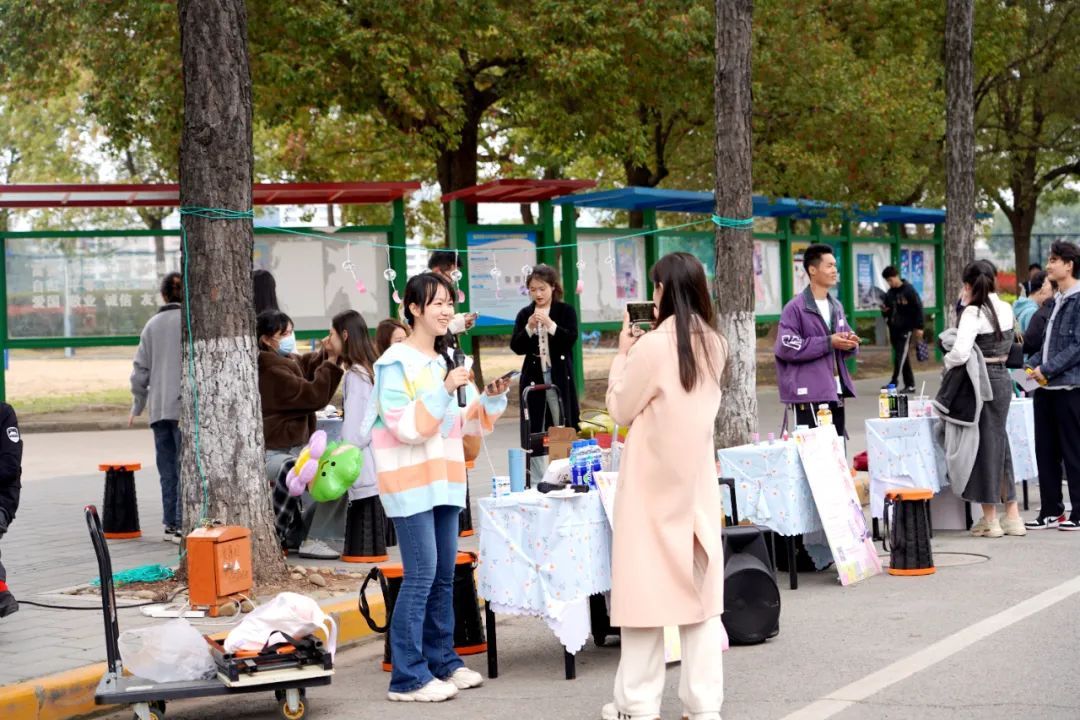 春风拂樱盛满园,恰是游园好时光。不远处,一场热闹的樱花游园会也吸引了不少学子参加。