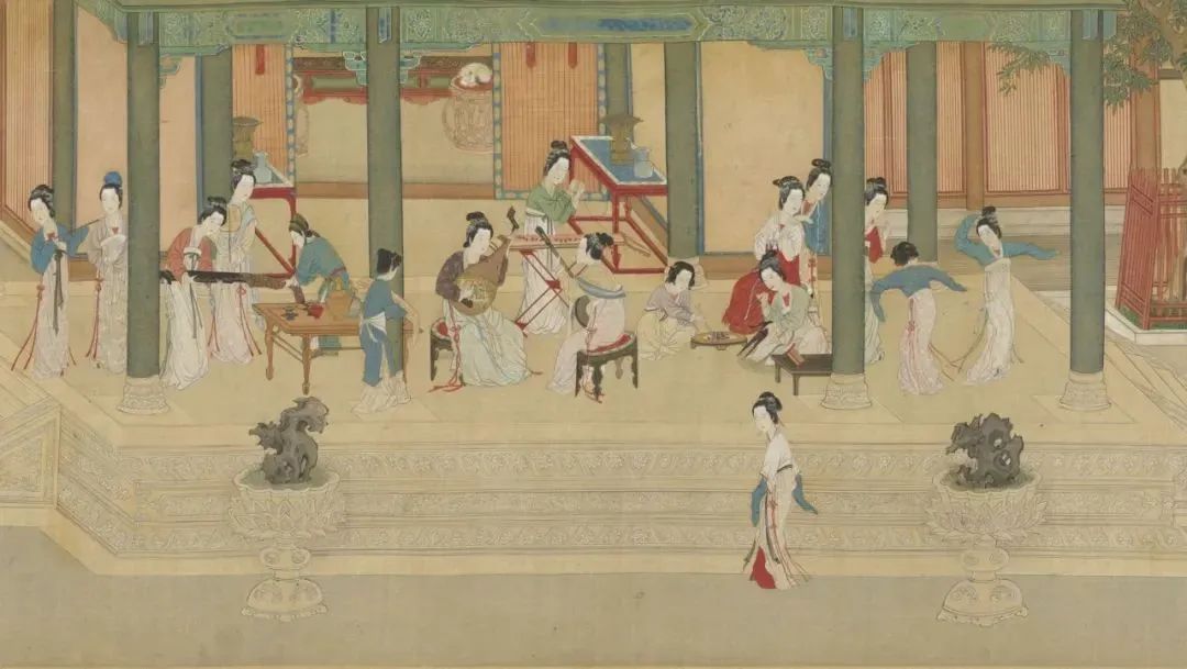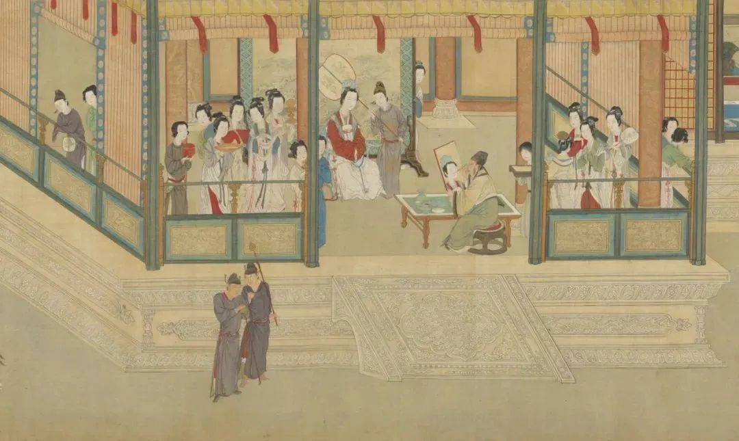 明 仇英 《汉宫春晓》卷(局部) 绢设色 30.6厘米 ×574.1厘米 台北故宫博物院