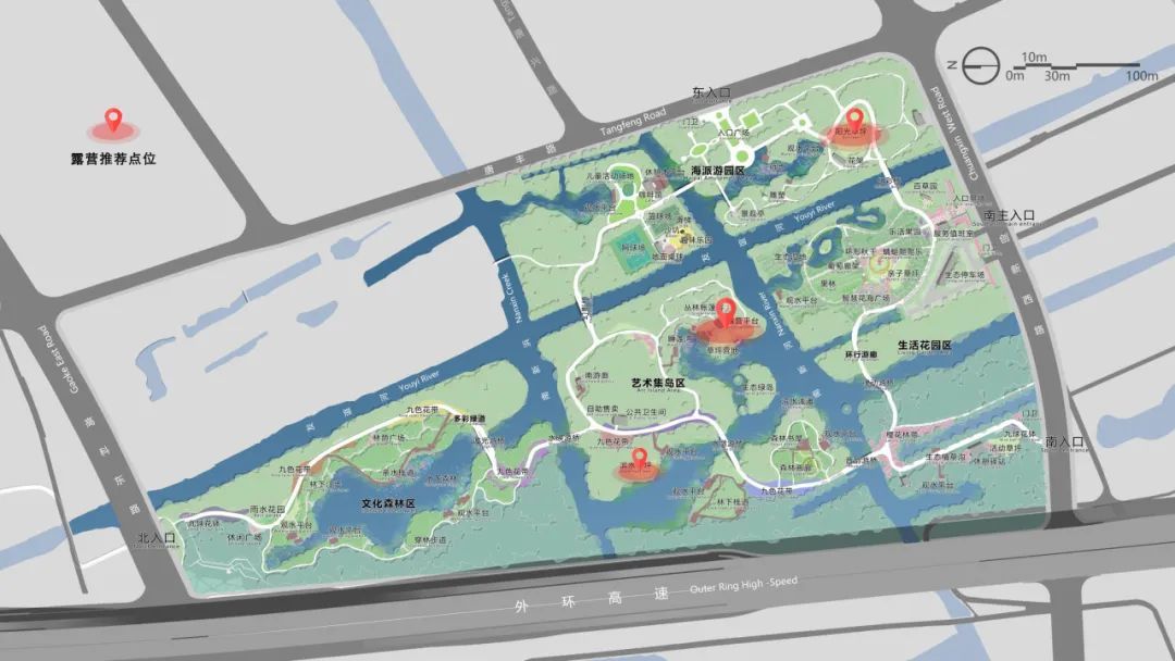春风轻拂面庞 万物苏醒 开园不久的唐丰公园 有着 集岛郊野之风情 文艺森林之浪漫 正是打卡好时机 快来解锁你的春日新体验吧! 此处先奉上 园内露营推荐点位 公园详情 水林野趣 艺术桥梁 唐丰公园位于浦东新区唐镇境内,是“环上”森林游憩类生态涵养公园,具备天然的水林生态资源优势。可远观生态绿岛,感受大自然的宁静与和谐。可穿行丛林密径,享受静谧的林下树影,仿佛置身于一个“行走的”文艺森林。